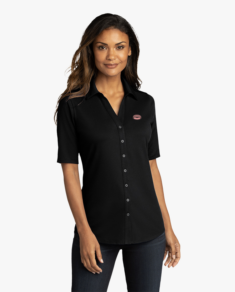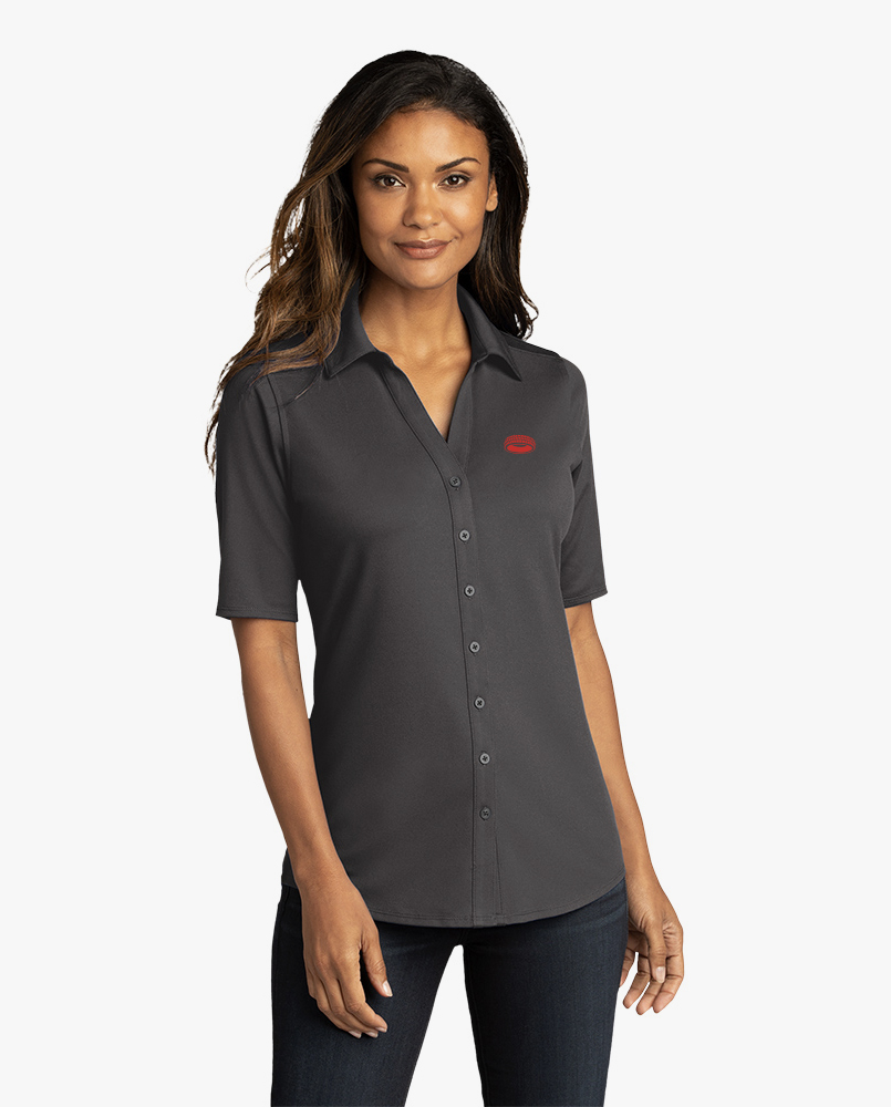 Performance joins professionalism in this Easy Care style that is snag-resistant and wicks moisture while also resisting odors.