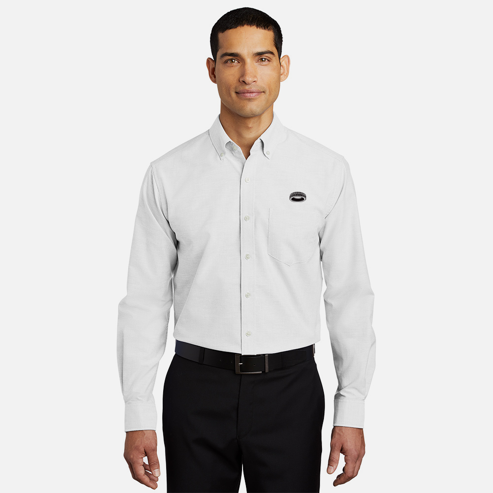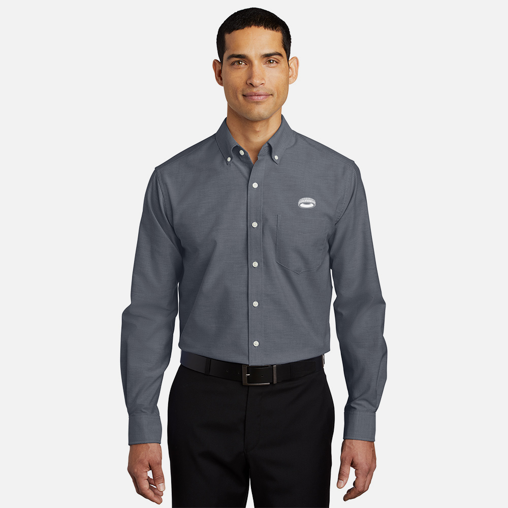 Look your best in a tried-and-true oxford that performs. Designed to release stains, our wrinkle-resistant SuperPro Oxford has a soft hand to keep you looking neat and professional all day long.
