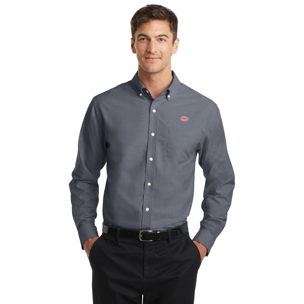 Look your best in a tried-and-true oxford that performs. Designed to release stains, our wrinkle-resistant SuperPro Oxford has a soft hand to keep you looking neat and professional all day long.